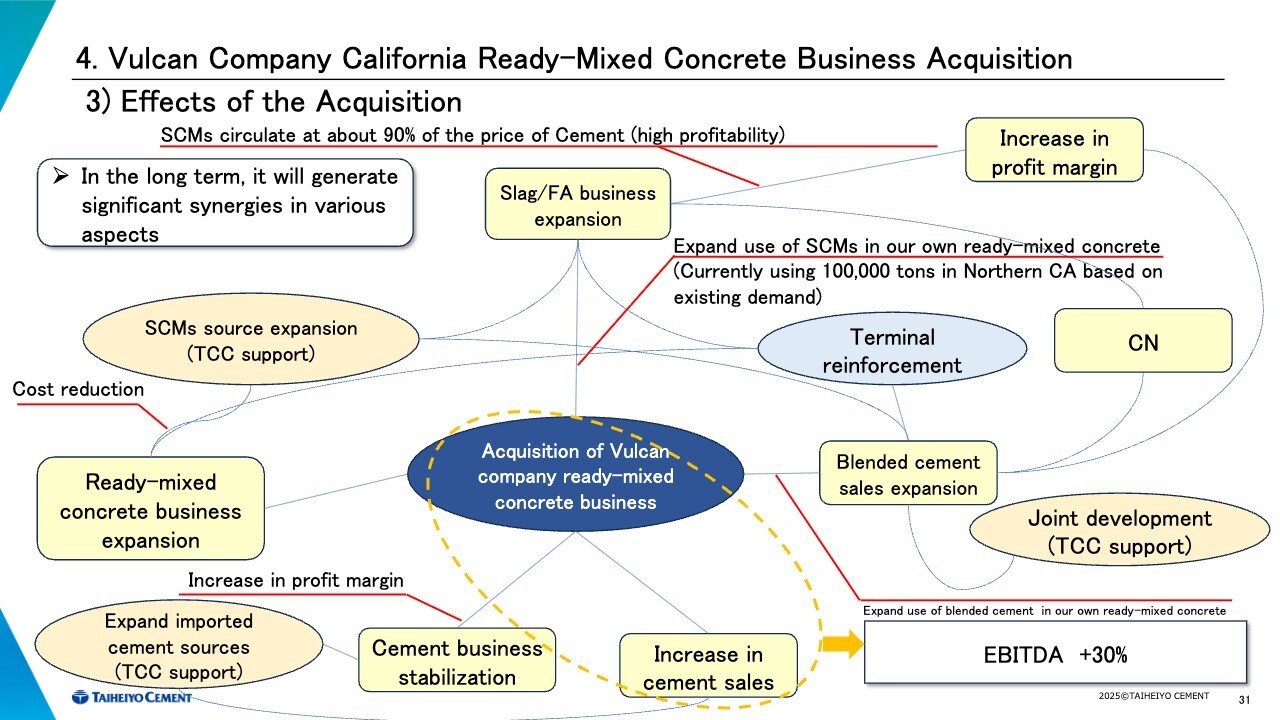 At the November financial results briefing, we explained that this acquisition would lift EBITDA by roughly 30%. That estimate reflects only the impact from expanding the ready-mixed concrete and cement businesses.