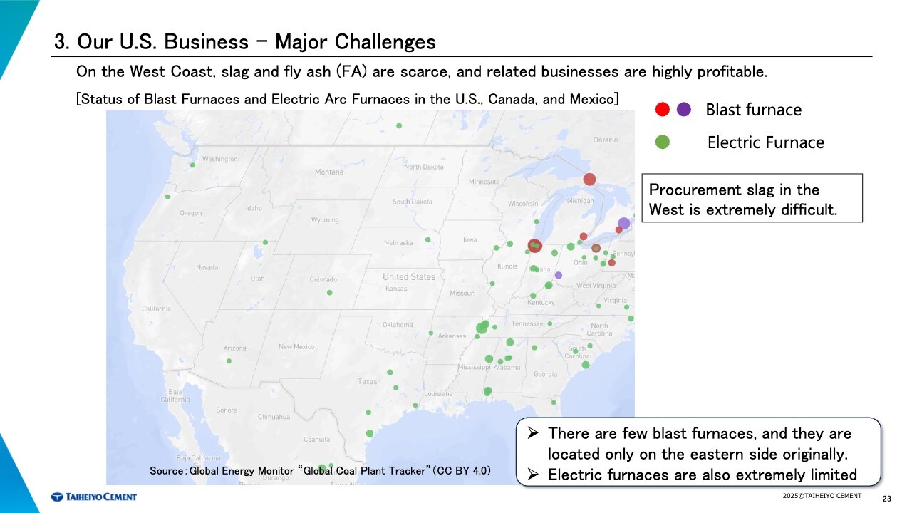 Another key point is that we are also considering importing fly ash. It is practical to evaluate how to blend fly ash and slag under different conditions. Since both materials can essentially be imported, we plan to manage operations with them in mind.