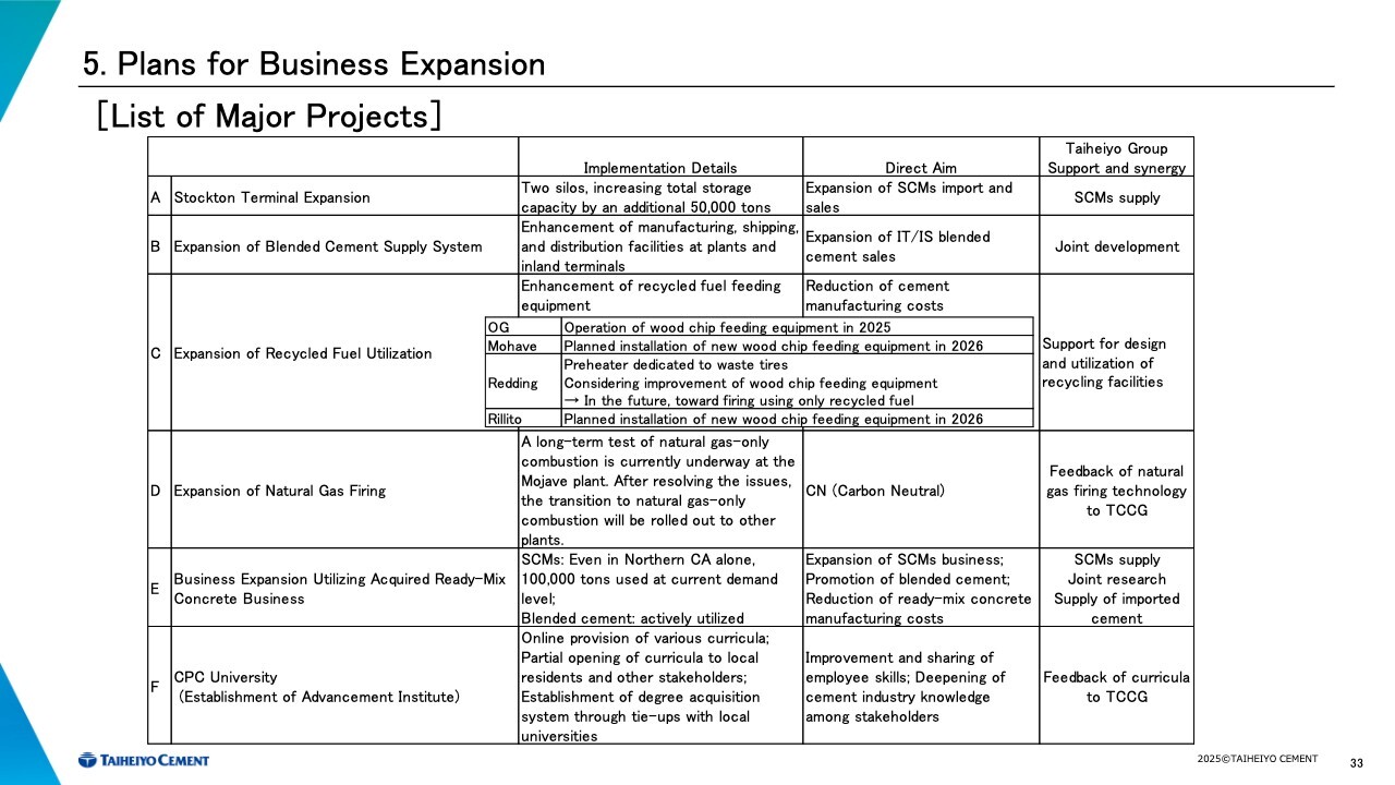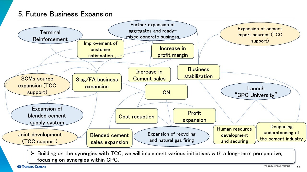 Next, let me briefly talk about blended cement. In addition to our R&D capabilities, CPC also has research laboratories. Synergy arises through exchanges between these laboratories, fostering new technological developments.