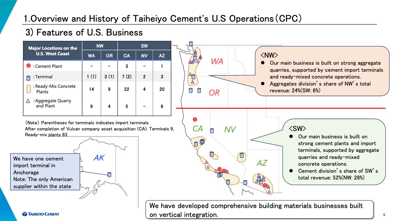 1. Overview and History of Taiheiyo Cement’s U.S Operations (CPC): 3) Features of U.S. Business