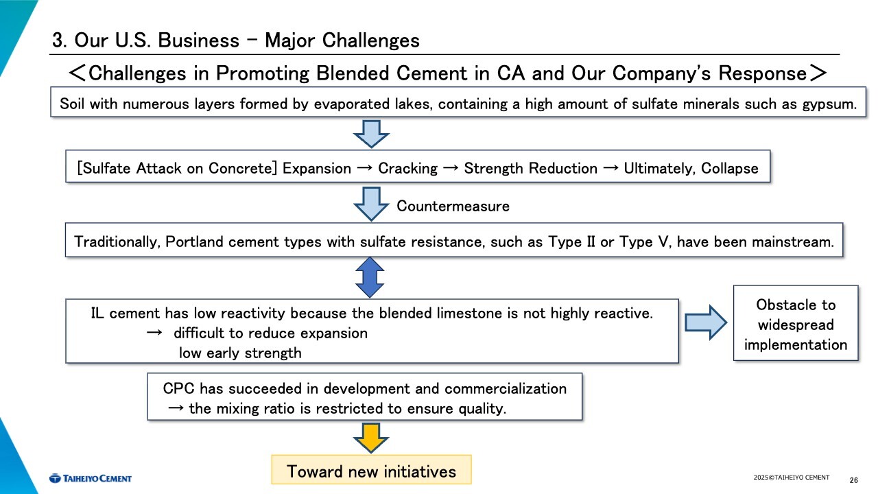 Questioner: You explained that securing slag and fly ash is the key to Type IT cement. At present, only your company can produce it. How long do you expect this advantage to last, and do you believe competitors will be unable to produce Type IT cement in the near term, and what is your outlook for sustaining this competitive edge?