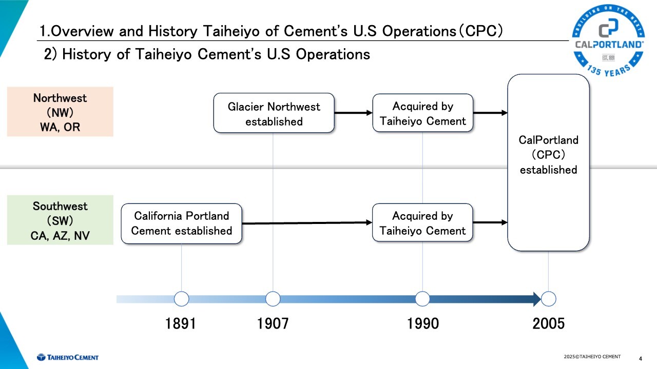 1. Overview and History Taiheiyo of Cement’s U.S Operations (CPC): 2) History of Taiheiyo Cement’s U.S Operations