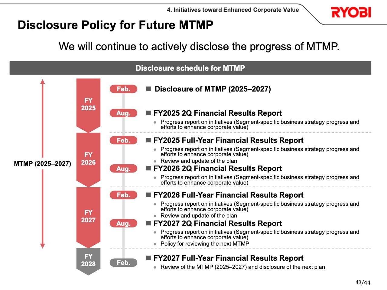 Finally, regarding our disclosure policy for future Medium-Term Management Plans, we will report on the progress of our initiatives and review and update the plans on a semiannual basis. In February 2028, we plan to review the current Medium-Term Management Plan and disclose the next plan.