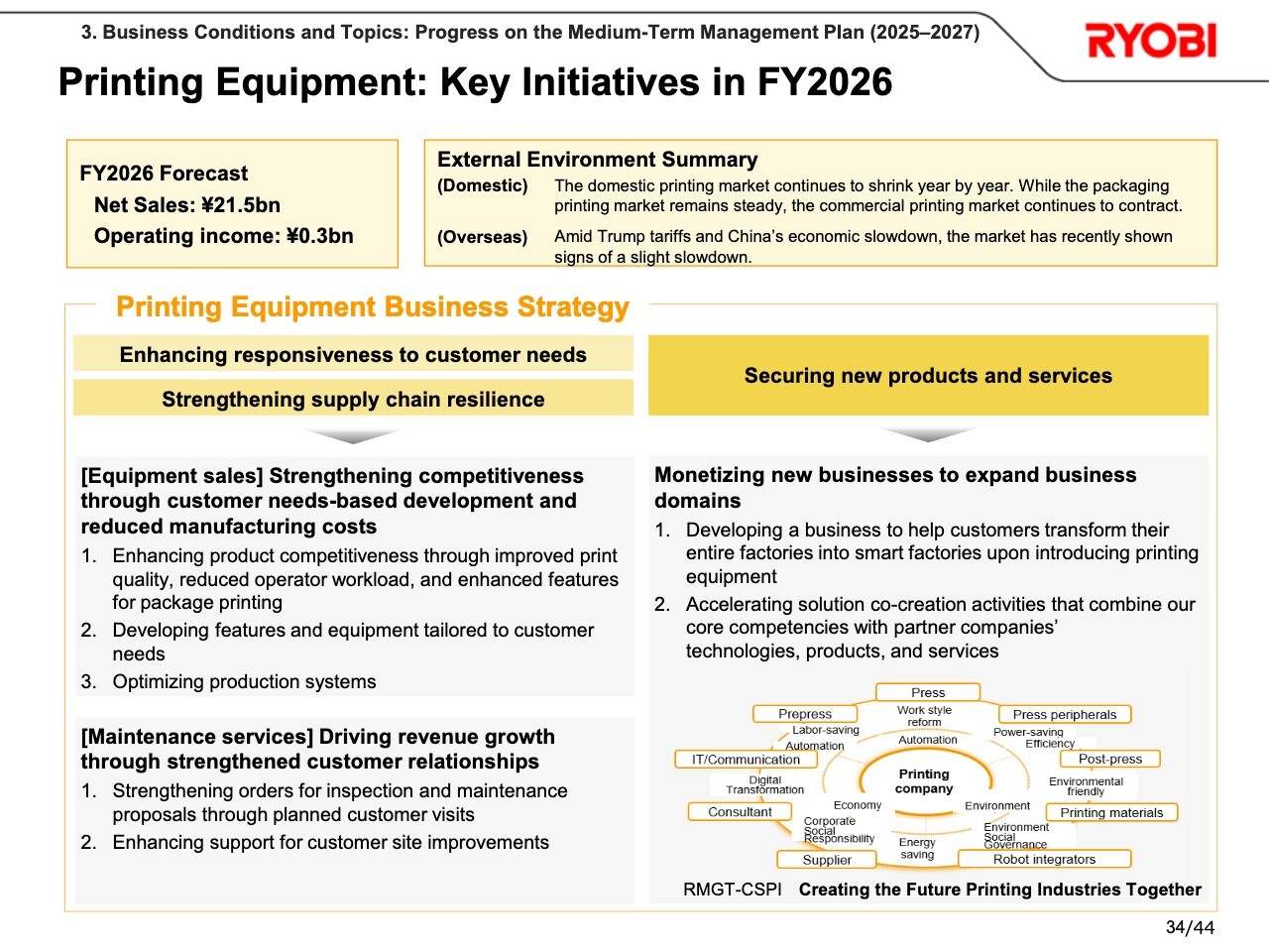 In the Printing Equipment business as well, we will continue to work on concrete initiatives based on the three business strategies, as we did in FY2025.