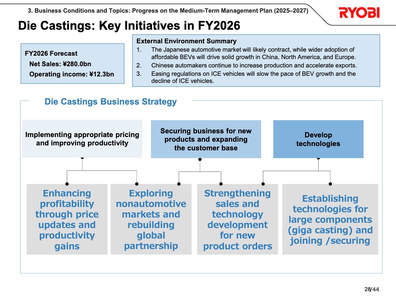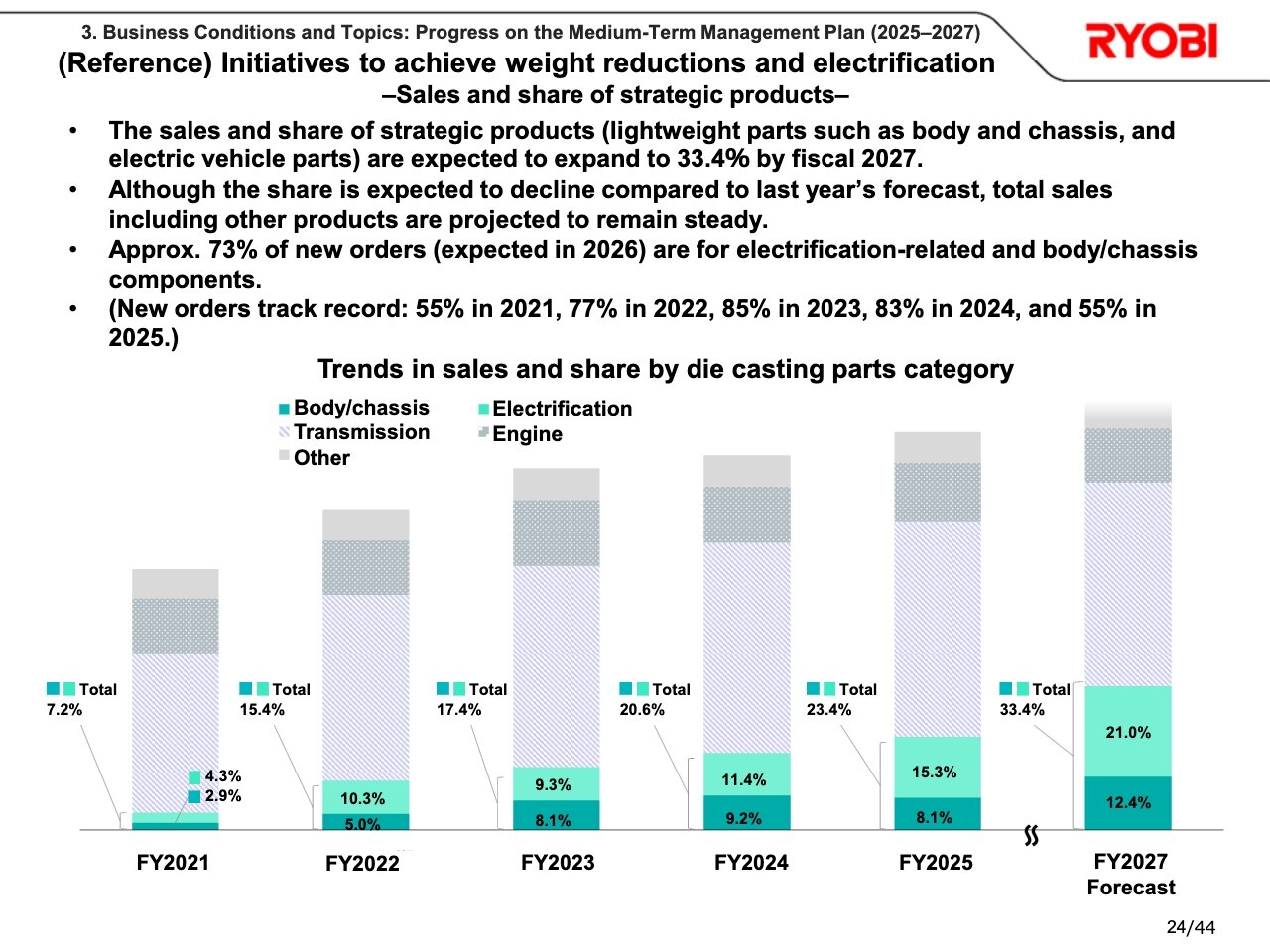 Regarding the die casting demand forecast shown on the right side of the slide, the share of electrification and drive parts in 2030 has been revised downward by 1 percentage point from our previous forecast.