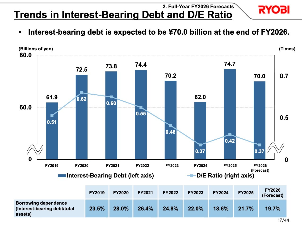 For FY2026, interest-bearing debt is expected to be ¥70.0 billion. We plan to continue strategic capital investments and shareholder returns while making effective use of interest-bearing debt.
