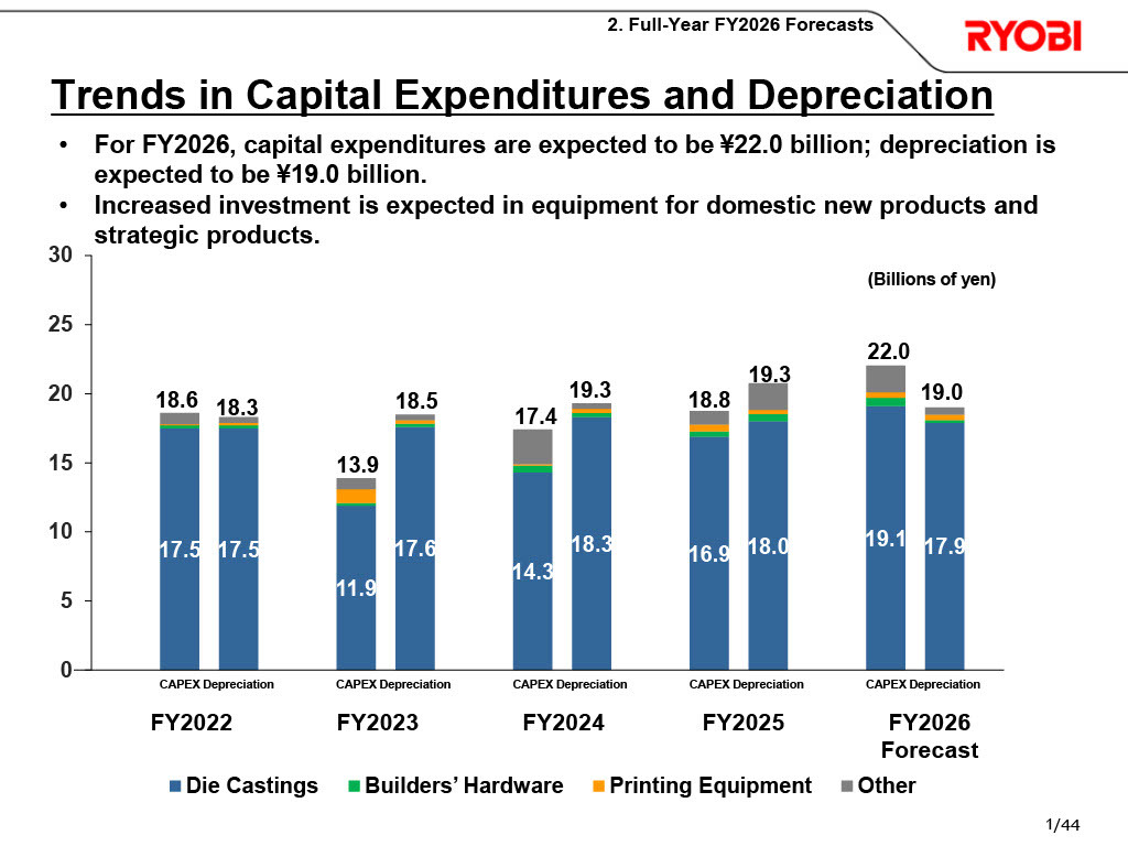 Question: Regarding capital expenditures for FY2026, the plan is ¥22.0 billion. Last year, there was a major new investment at the Kikugawa Plant for "Giga casting." Could you explain what projects are planned this year and why the investment level is even higher?